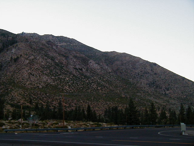 At the end of the Hope Valley, the road kinks up pretty good. I knew from my downhill coast that it was about 4 miles of uphill to get to the pass. Here is the view of the pass. If you look closely, you can see the road cut diagonally in the center of the picture.