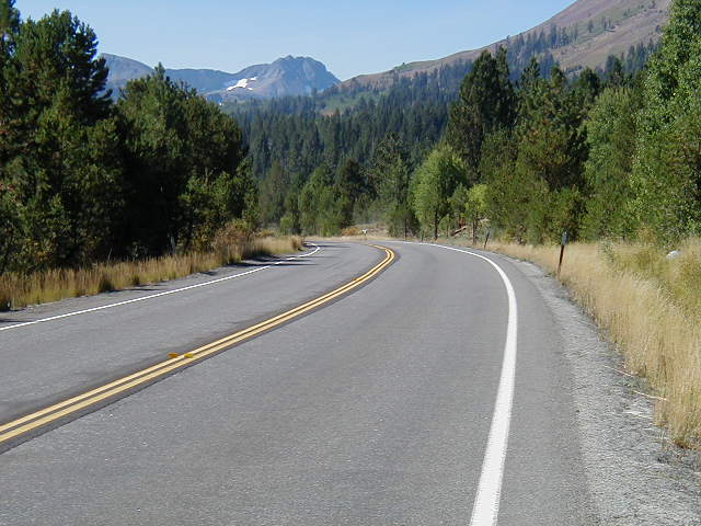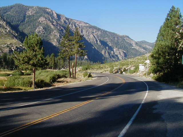 Just after Sorenson's and the junction of Highways 88 and 89 (the turn-off to South Lake Tahoe), the Hope valley opens up. What's more, the wind had completely died away and the temperature had heated up. I took off all my warmers and slathered on sun cream.