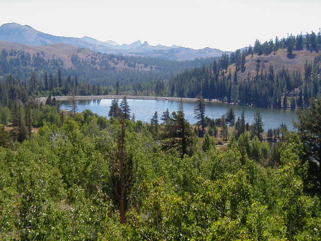It's another hard slog up to regain the 700 feet or so that is lost to get to the lake. Again, the views at the top of the grade (elevation 8000 feet) are stunning. This view is looking east out past the lake.