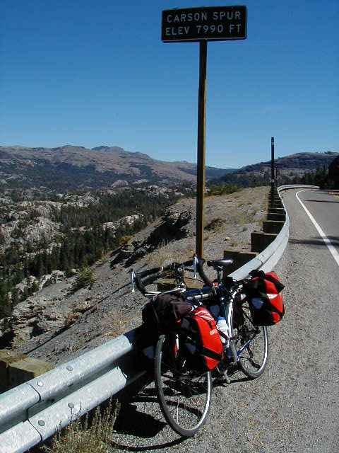 I wanted to get an early start, I was up and out by 8am, as it was 15 miles to the pass and I figured it would take me 3 hours to do that, plus 1 hour for breakfast. Plus, I still had to do the 40 miles from Carson Pass to Pollock Pines. Even with all the downhill, I knew it would be a long day in the saddle. In addition to the climb to the pass, roughly 3000 feet, there was the climb out of the Silver Lake valley and the upgrade from Jenkinson Lake, at the end of the day.