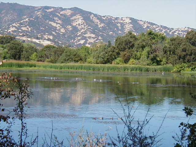 A few miles west of Winters is a resevior whose name I don't recall. I took pictures of it on the way out and, again, on the way back. As you can see, there was a fair number of water fowl in the water.